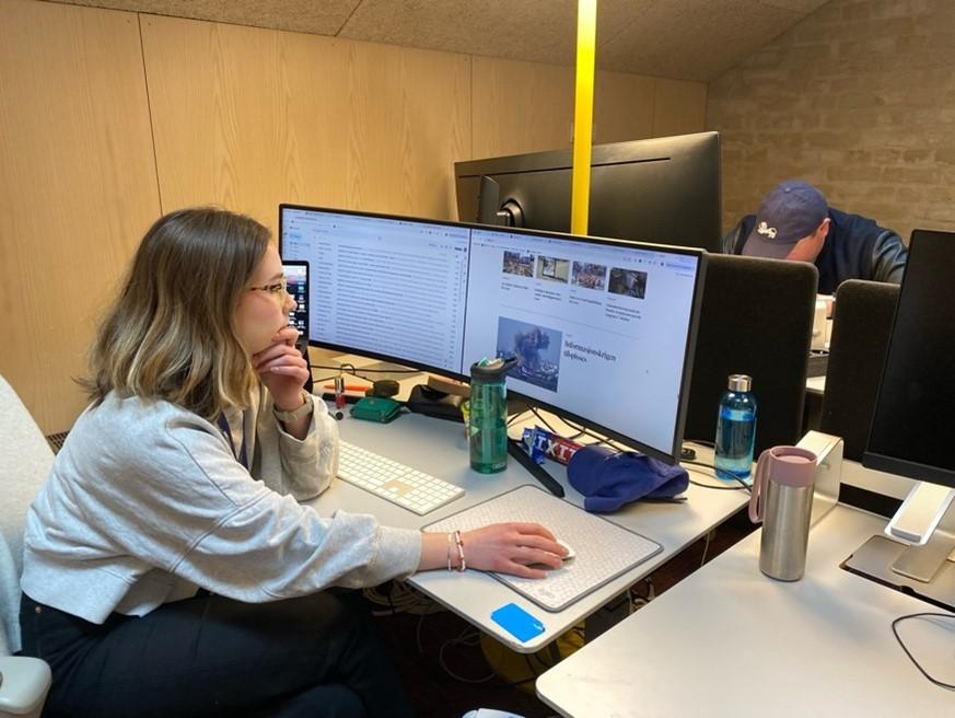 I fjerde etasje på Pressens Hus ligger redaksjonslokalene til Faktisk.no. Sammen utgjør Faktisk.no sine syv journalister en liten redaksjon med en stor oppgave. De jobber med å verifisere historier, bilder og videoer som dukker opp i nyhetsbildet. Journalist Kajsa Garmann Lønrusten er en av dem.