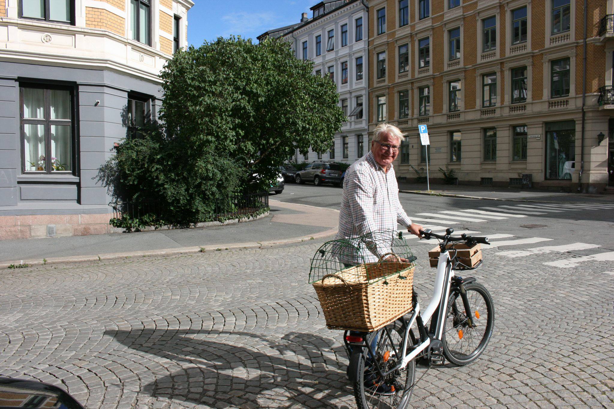 Ved første møtet gir han en koronahilsen fra en meters hold. Denne tirsdagen var det ikke mye plass på restauranten i lunsjtider, dermed ble det et bord til to i skyggen. Mannen setter seg ned.