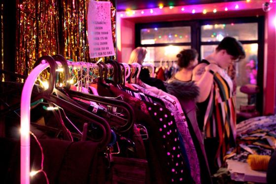 Forrige torsdag ble en travel dag på Elsker i Oslo sentrum. Baren ble fylt med massevis av brukte klær, og mange valgte å benytte seg av muligheten til å kjøpe billige klær i sin størrelse. Det ble satt en øvre prisgrense på 200 kroner. Det var folksomt og lysene var dimmet inne i lokalet. Samtidig som kjente poplåter ble spilt i bakgrunnen, sto folk med mobilene sine og lyste opp klær, i et håp om å finne plagg som ellers er vanskelige å finne i store størrelser. Det møtte opp folk i alle aldre. Dette påvirket ikke stemningen, og baren var preget av mye latter og gode samtaler.