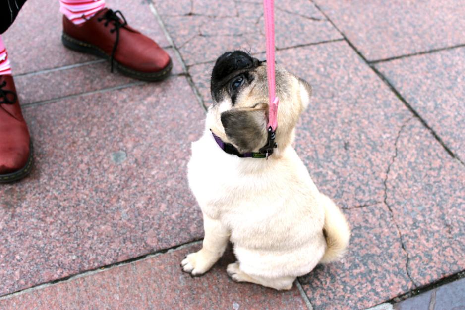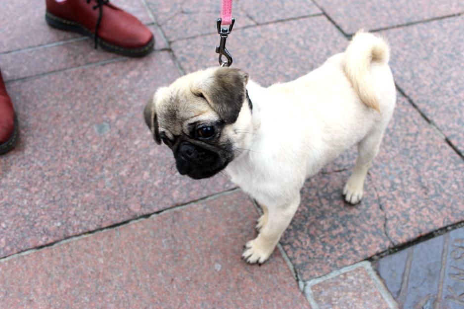 Da damen som fant mopsen, ankom Norge, tok hun kontakt med Dyrebeskyttelsen i Bergen. Dyrebeskyttelsen er en dyrevernsorganisasjon med lokaler over hele landet. De arbeider for dyrs rettigheter, og griper inn dersom de utsettes for urett. Damen fortalte historien om valpen, og overlot den anonymt til organisasjonen. Dyrebeskyttelsen tok imot hunden.