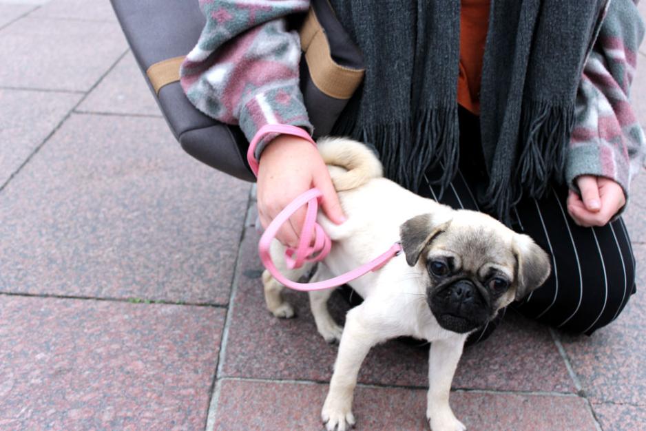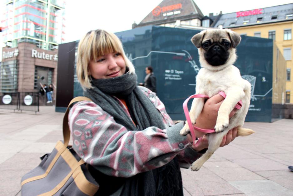 Nå er hundevalpen midlertidig plassert hos Silje Eskildsen Sørensen som bor i Oslo. Den 18-år gamle jenta var frivillig hos Dyrebeskyttelsen i sommer. Hun er fostermor, og tar dermed vare på dyr før de blir adoptert. For noen måneder siden tok hun imot en hjerneskadet kanin som hun nå eier. Dyrebeskyttelsen kontakten Sørensen og spurte om hun var interessert i å fostre opp mopsen før den adopteres bort.