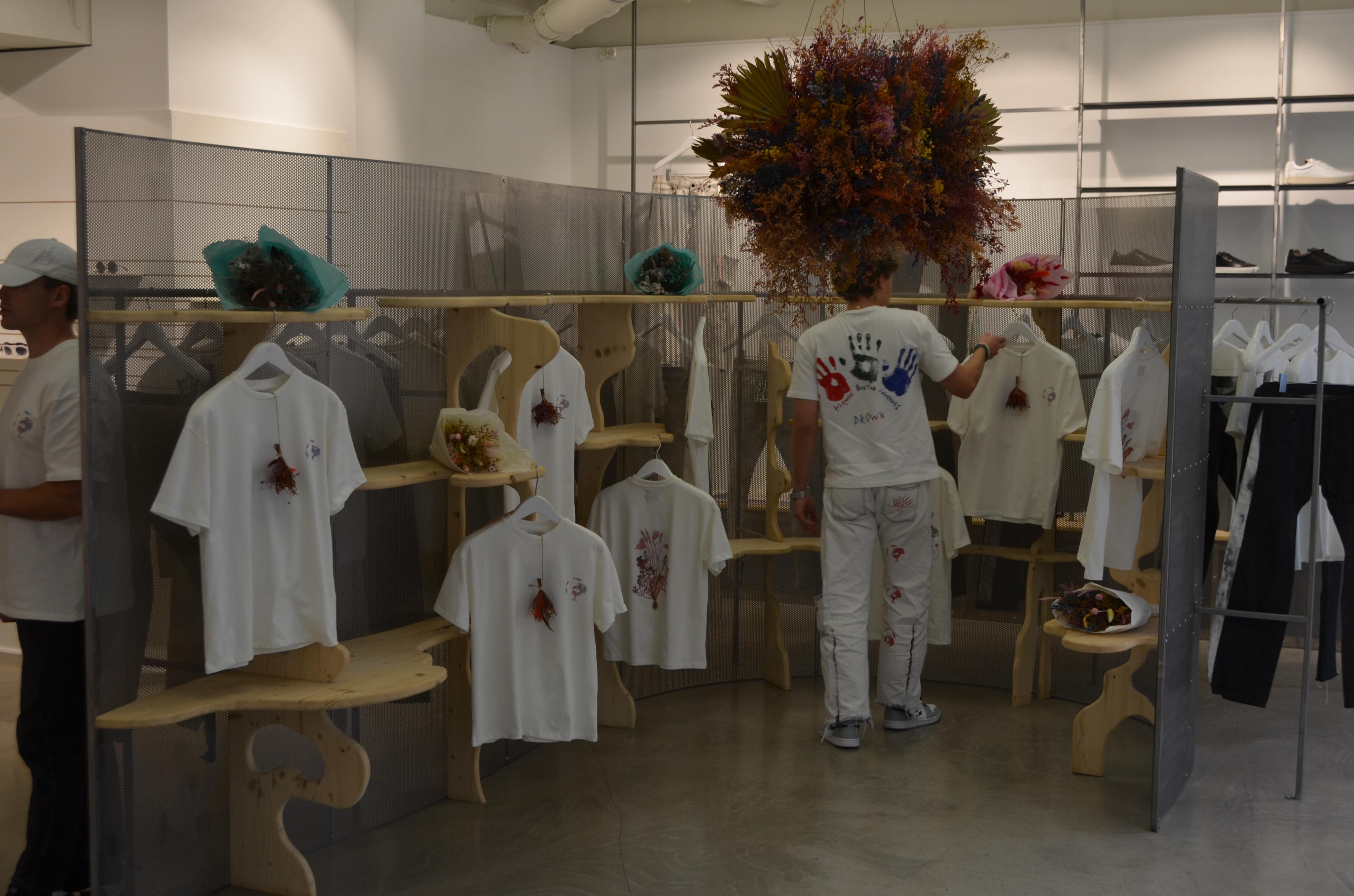 Butikken er romslig, men guttene har skrevet i invitasjonen på Facebook at det er fint om folk møter opp til forskjellig tid, slik at det ikke blir for mange inne i lokalet. Overalt i lokalet henger egendesignete klær fra de tre 21-åringene.
