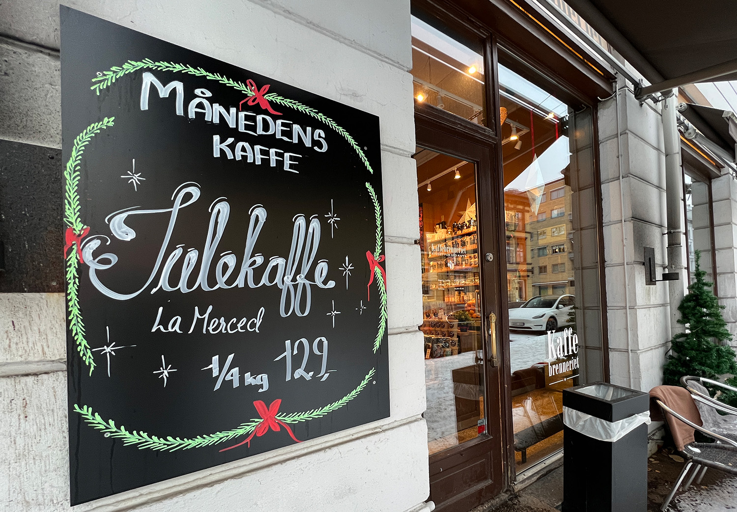 Kari Hanset er klar for jul på Kaffebrenneriet Foto: Mia Løkseth