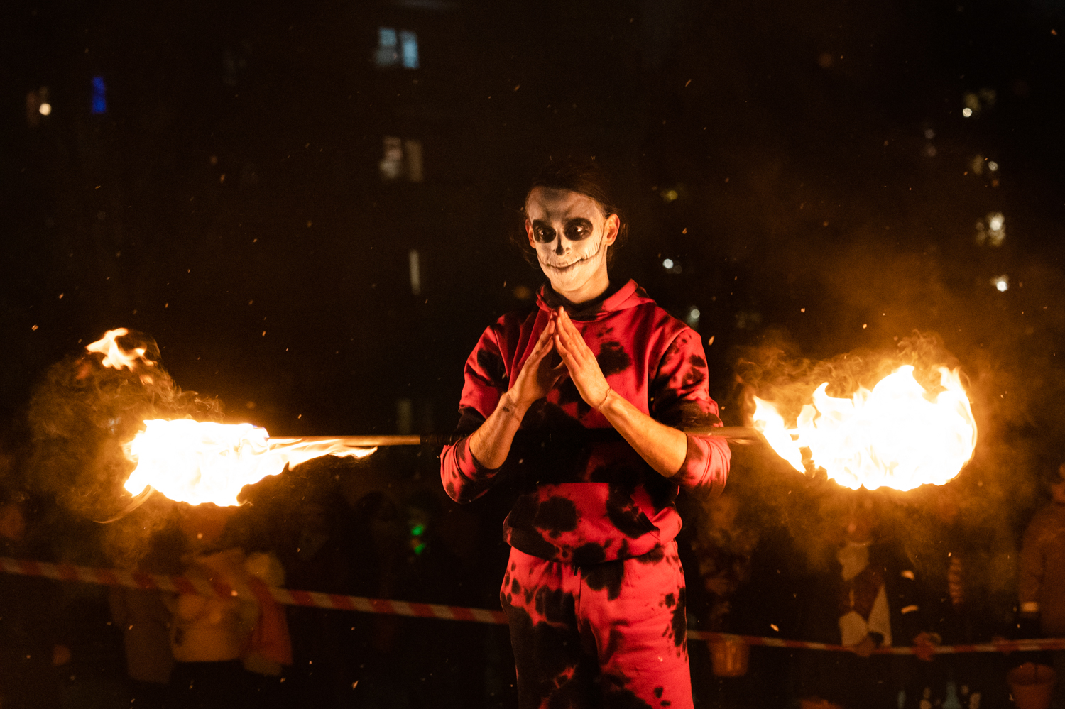 Den ukrainske gjøgleren Andrii Panov kom til Norge for ett og et halvt år siden som flyktning sammen med kjæresten sin. Han forteller at å drive med flammeshow bare er en av mange hobbyer. Panov har en forkjærlighet for flere typer idretter, deriblant parkour. Flammeshow har han kun holdt på med i noen få år, og mye av kunnskapen har han hentet fra YouTube.
