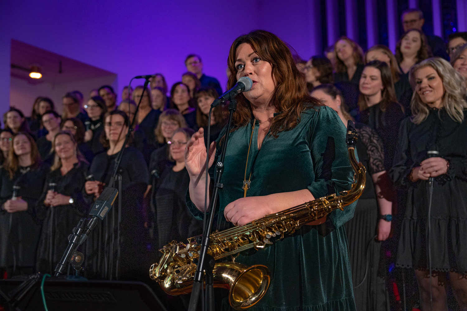 Tradisjon tro var det duket for julekonsert i Grefsen kirke med koret Oslo Gospel explosion søndag kveld. Der ble det servert alt fra klassiske julesanger til rendyrket gospel. Med seg på laget hadde de musikeren Frøydis Grorud, kjent for mange som saxofonisten i NRK-programmet Beat for beat. Ved hennes side var Leif Ingvald Skaug, som i tillegg til å være dirigent og leder for koret, sang solo mens han trakterte tangentene.