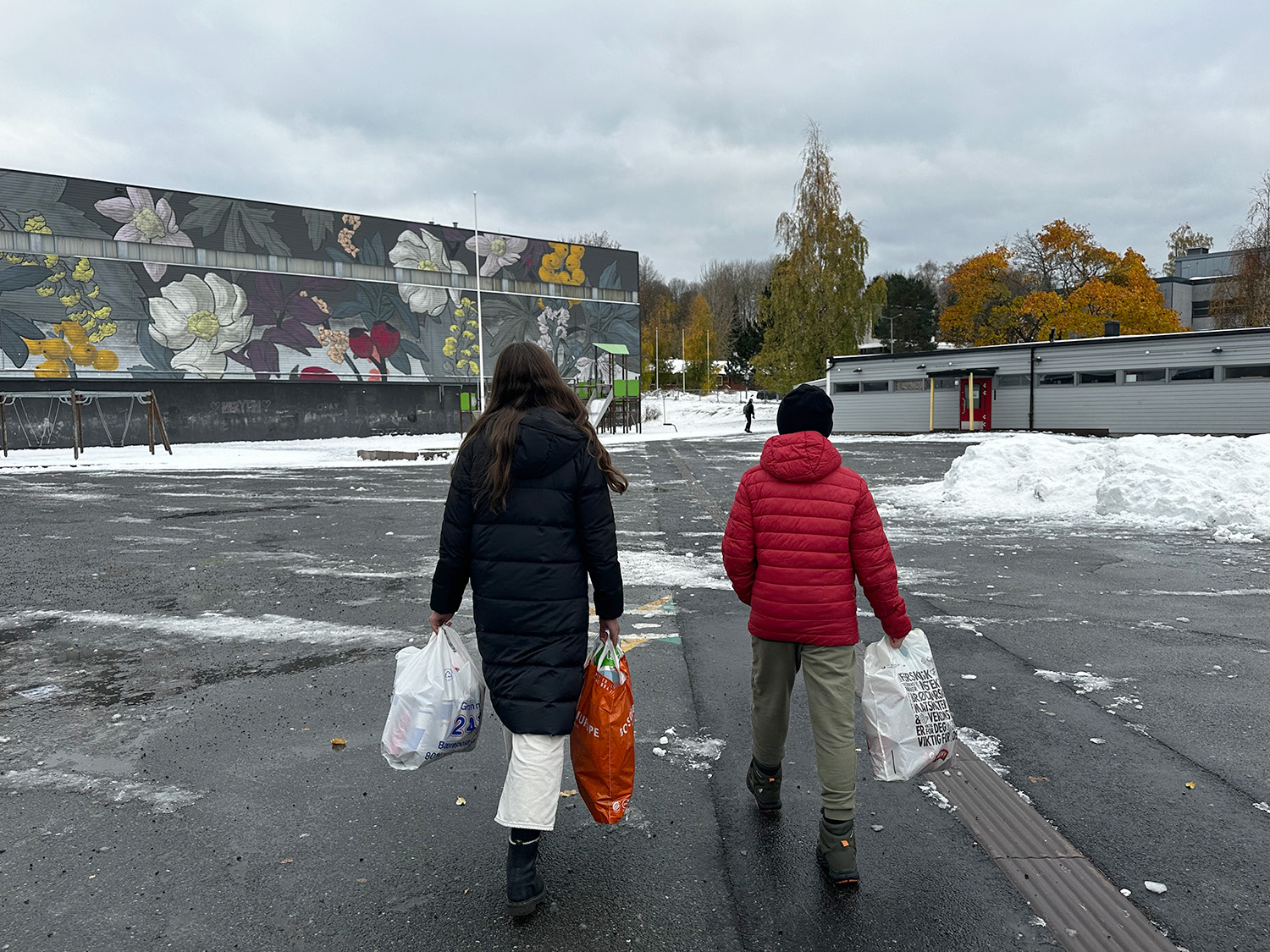 Sirin er et av flere elever i 7. trinn som er med på panteinnsamlingen. Hun mener at vi må vise empati ovenfor de som har det vanskelig. Videre forteller hun at hun har troen på at alle gode gjerninger man gjør i livet en dag vil komme tilbake til deg på et eller annet vis.