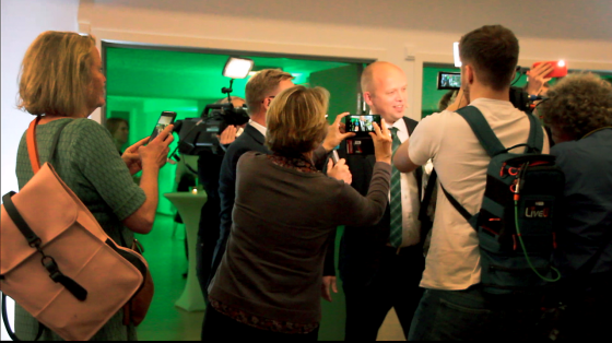 – Gratulerer med det beste valget i partiets lokalvalg-historie, sa en tydelig rørt partileder idét han ankom talerstolen.