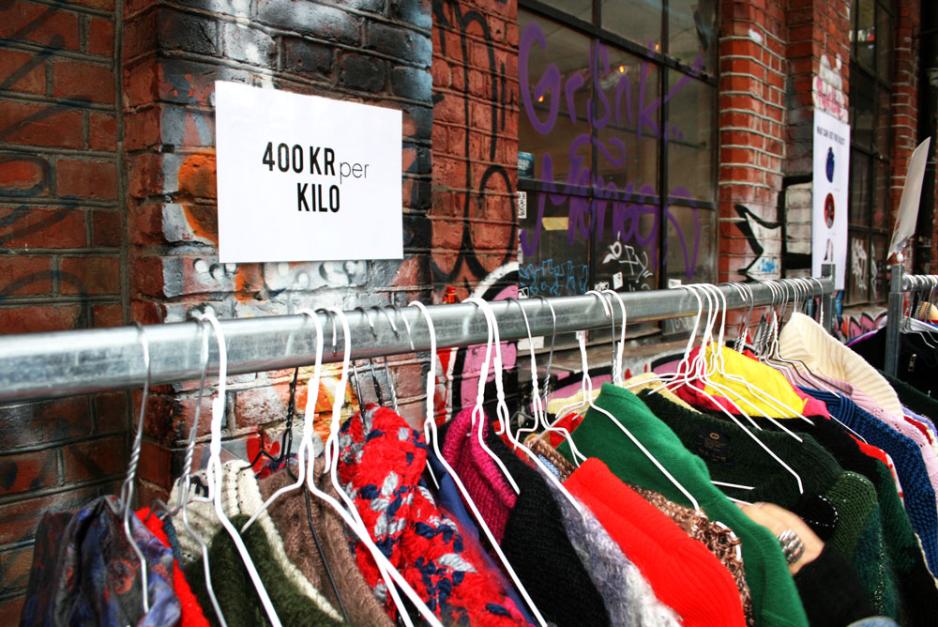 I helgen arrangerte tyske VinoKilo et stort klessalg på utestedet Blå i Oslo. Til forskjell fra de fleste andre bruktsalg, hadde ikke hvert plagg hver sin pris. I stedet plukket man med seg plaggene man ønsket å kjøpe til kassen. Der ble klærne veid og du betalte en kilopris for klærne. Prisen var 400 kroner for kiloen.